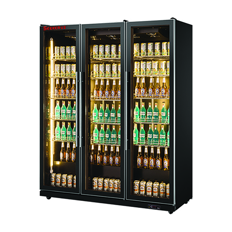 知名品牌压缩机, 性能稳定; 黑色王中王全屏玻璃门; 内外黑色板材, 高端大气; 配5层镀铬两用可拆分层架,方便饮料及果蔬摆放切换; 带自动蒸发水功能; 柜内灯光黄、 紫、 蓝三色可调。