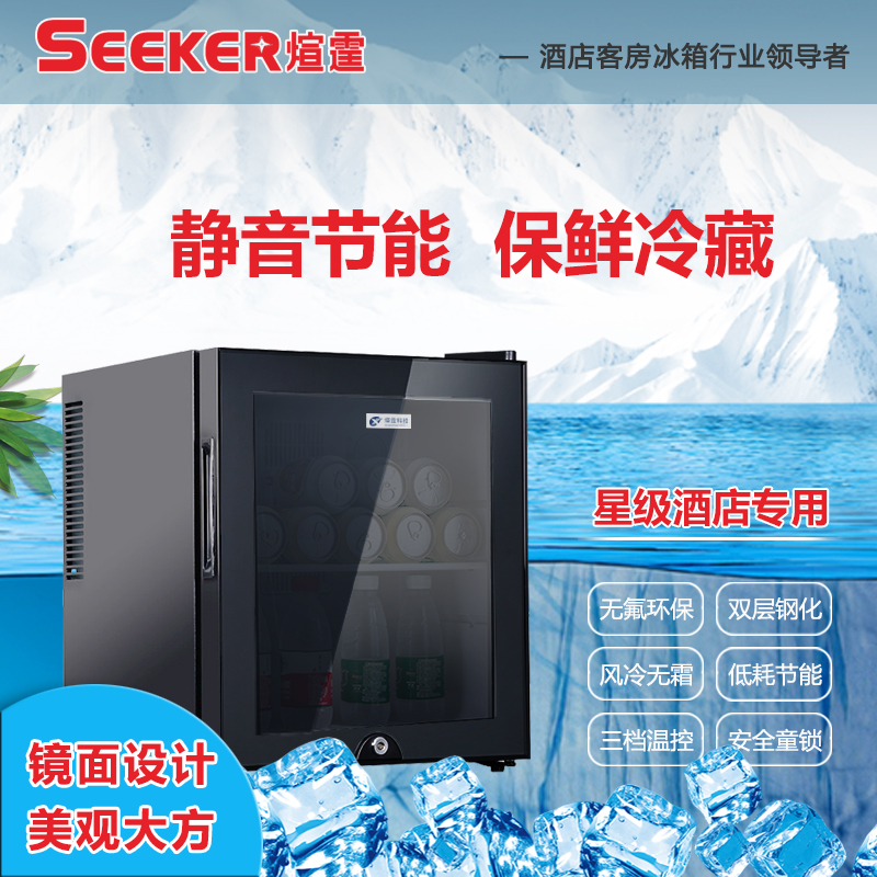 静音运行,绿色环保。LED内置照明灯,电子温控、自动化霜,节能省电。加锁,可调高度搁物架,可调高度底座,镜面玻璃,高端时尚。